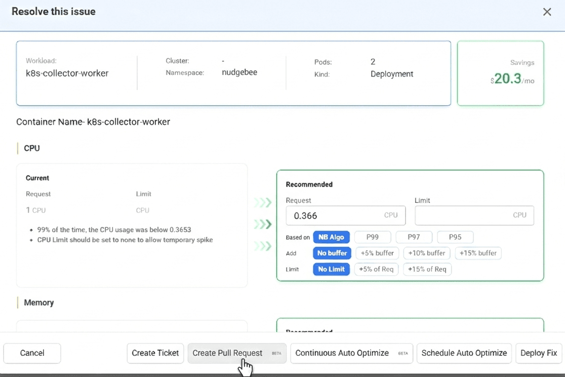 When a similar issue resurfaces, Nudgebee pulls relevant memories and applies past learnings to accelerate resolution.